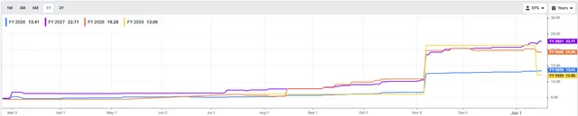 下面是同期每股收益一致预期(EPS consensus):