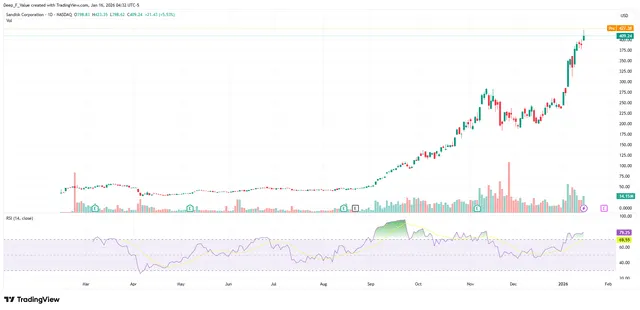【图表位置】TradingView SanDisk 股价图