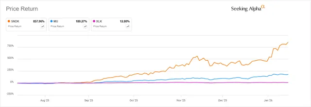 【图表位置】Seeking Alpha 存储股 vs 科技板块对比图