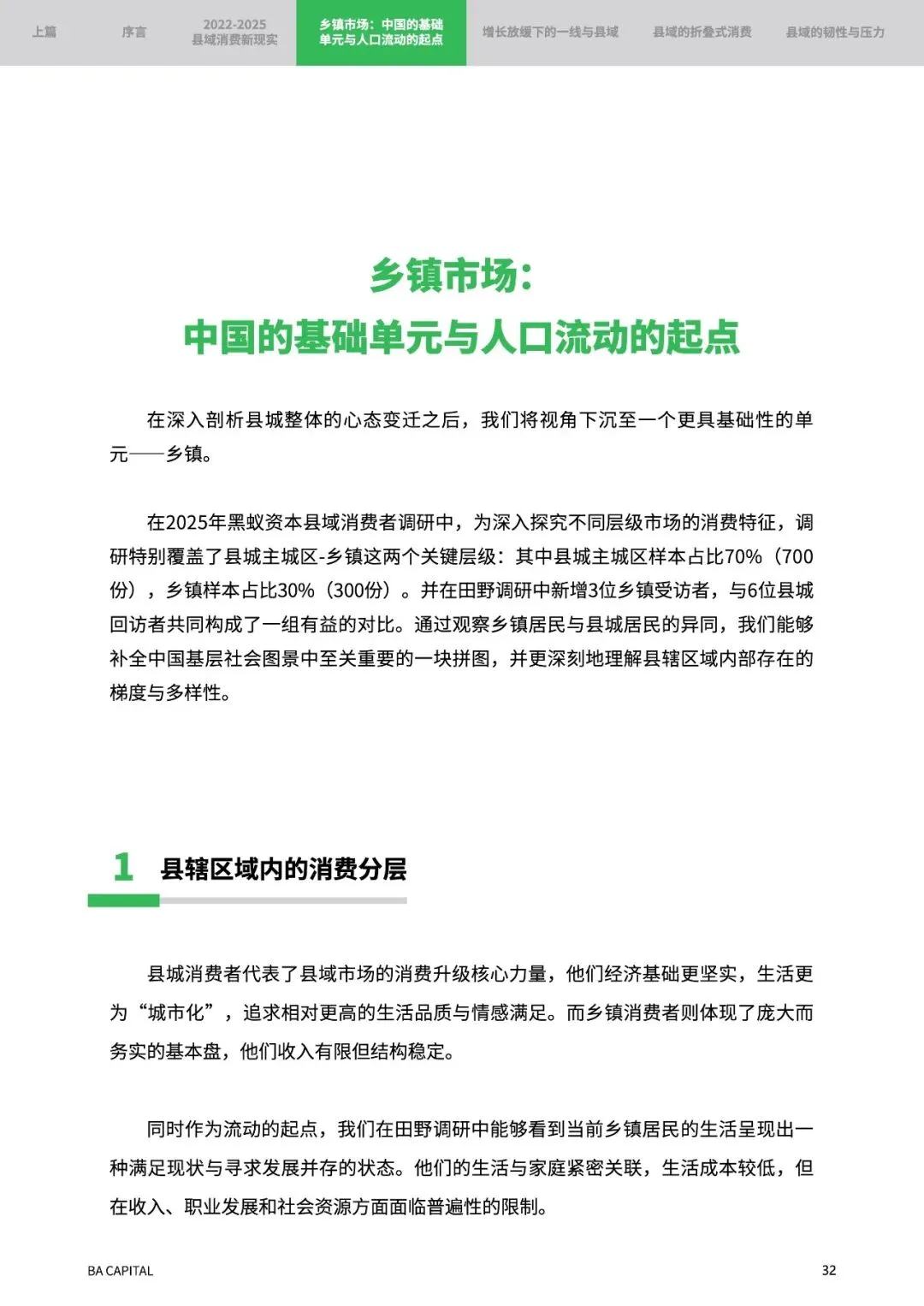 朋友们,今天聊个看似土味实则暗藏黄金的话题——县域消费。黑蚁资本这份98页的《重返县域》报告我啃了三天,最大的感受是:当一线城市还在纠结“消费升级还是降级”时,县域市场早已悄悄进化出了自己独特的生存哲学。作为从业十年的老分析人,我带大家穿透数据迷雾,看看这个占中国人口三分之一的基石市场正在发生哪些惊人变化。