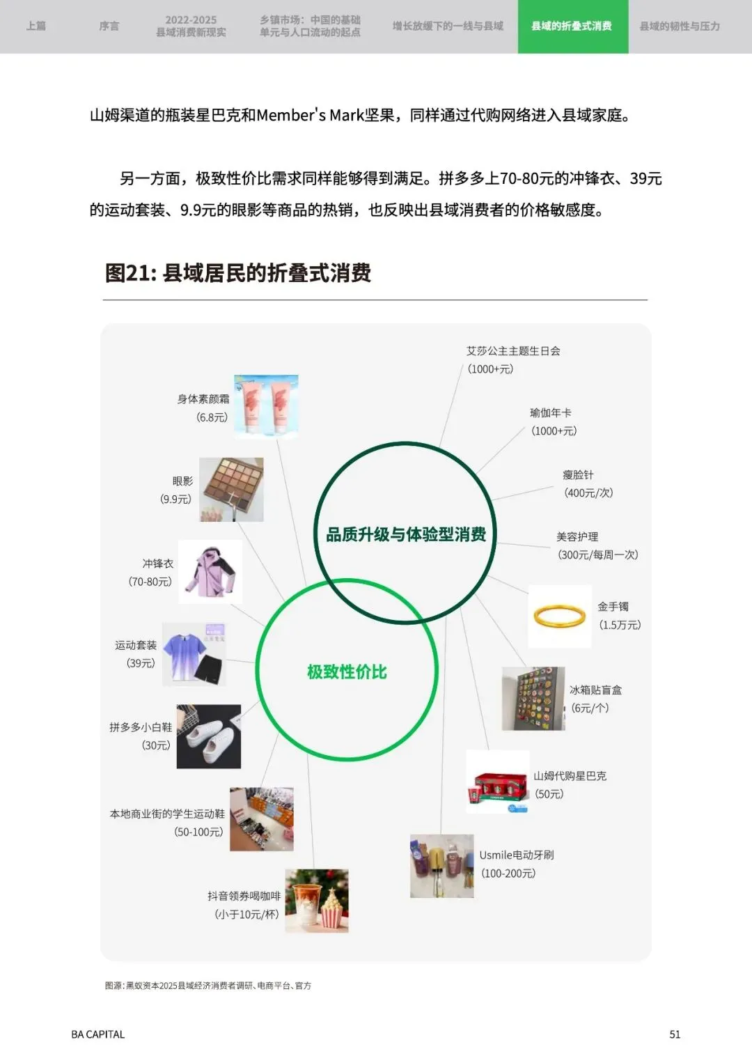 “折叠式消费”的兴起:同一群人既买拼多多39元的运动套装,也舍得花1.5万买金手镯;既抢9.9元眼影,也要去美容院办千元月卡。这不是精分,而是新一代县域消费者的精明——在基础消费上极致性价比,在情感消费上大胆投资。