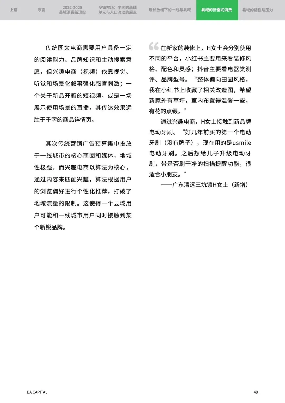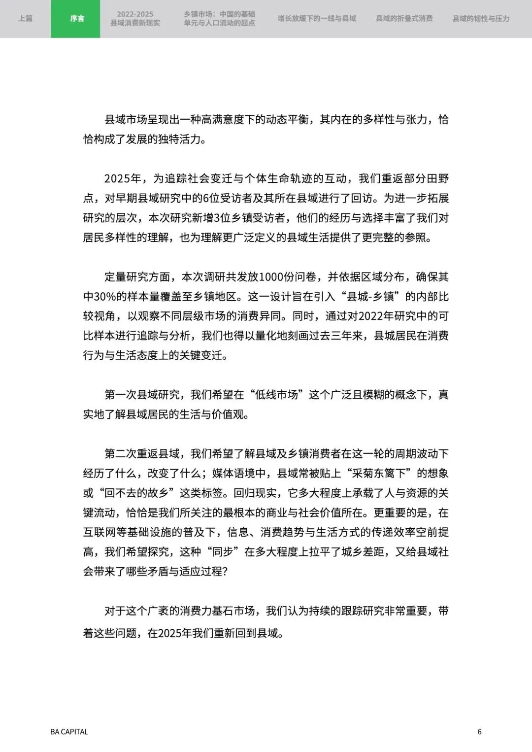 朋友们,今天聊个看似土味实则暗藏黄金的话题——县域消费。黑蚁资本这份98页的《重返县域》报告我啃了三天,最大的感受是:当一线城市还在纠结“消费升级还是降级”时,县域市场早已悄悄进化出了自己独特的生存哲学。作为从业十年的老分析人,我带大家穿透数据迷雾,看看这个占中国人口三分之一的基石市场正在发生哪些惊人变化。