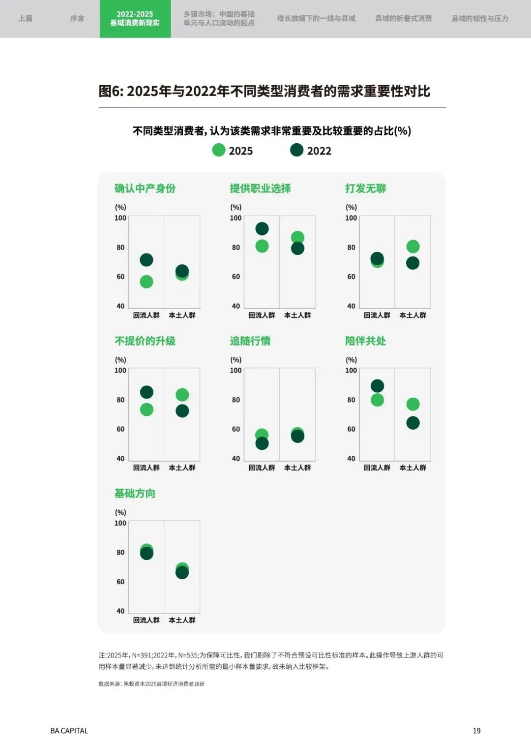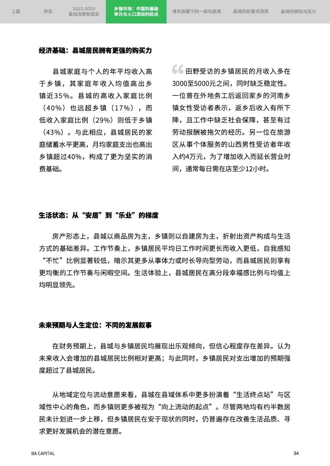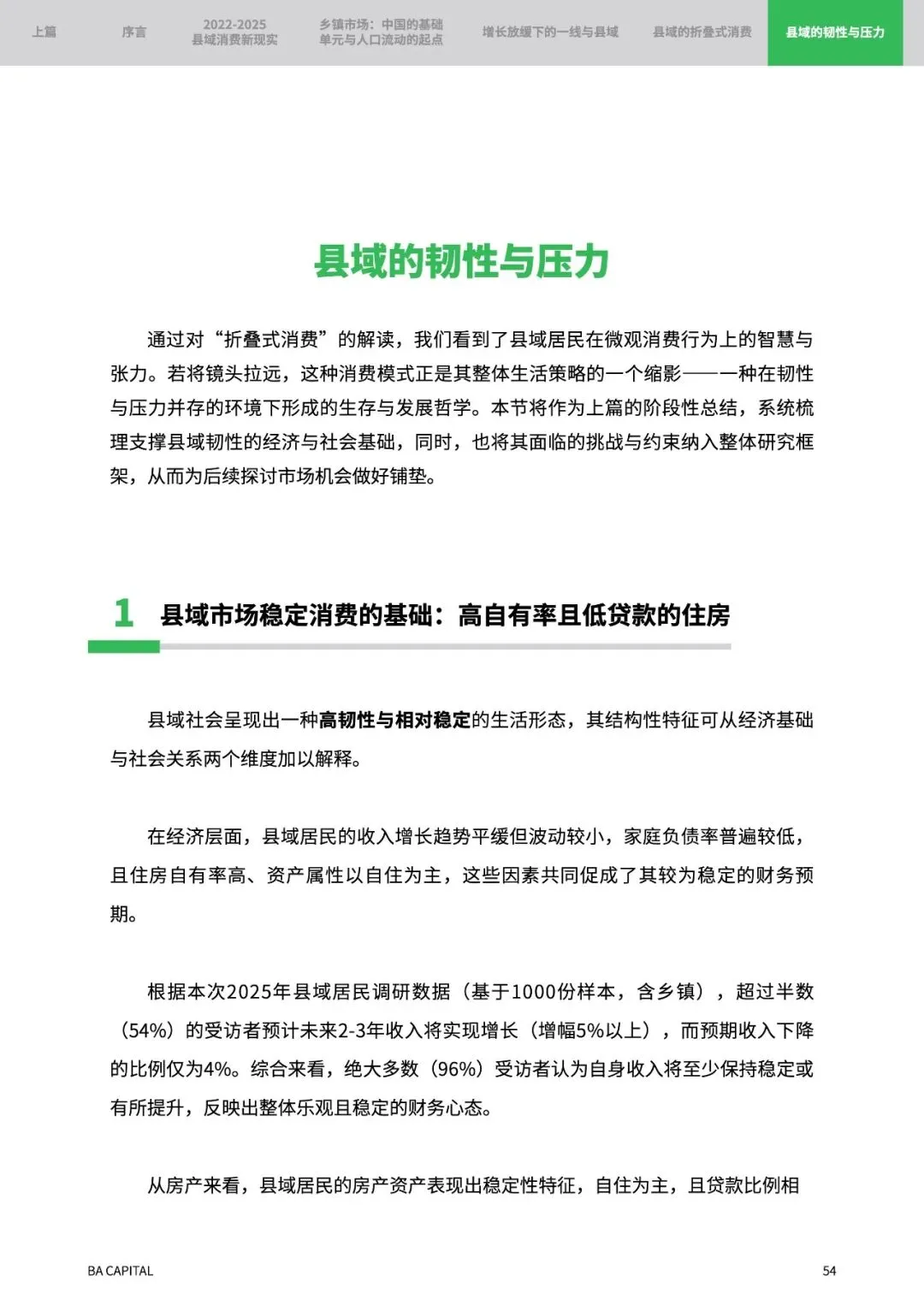 务实的财务预期,96%的县域居民认为未来收入至少保持稳定。这种“不求暴富但求安稳”的心态,反而形成了消费的稳定器。