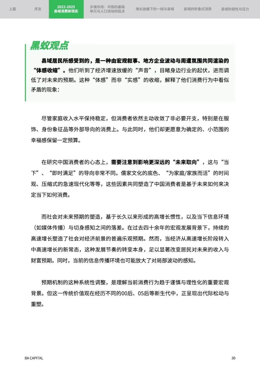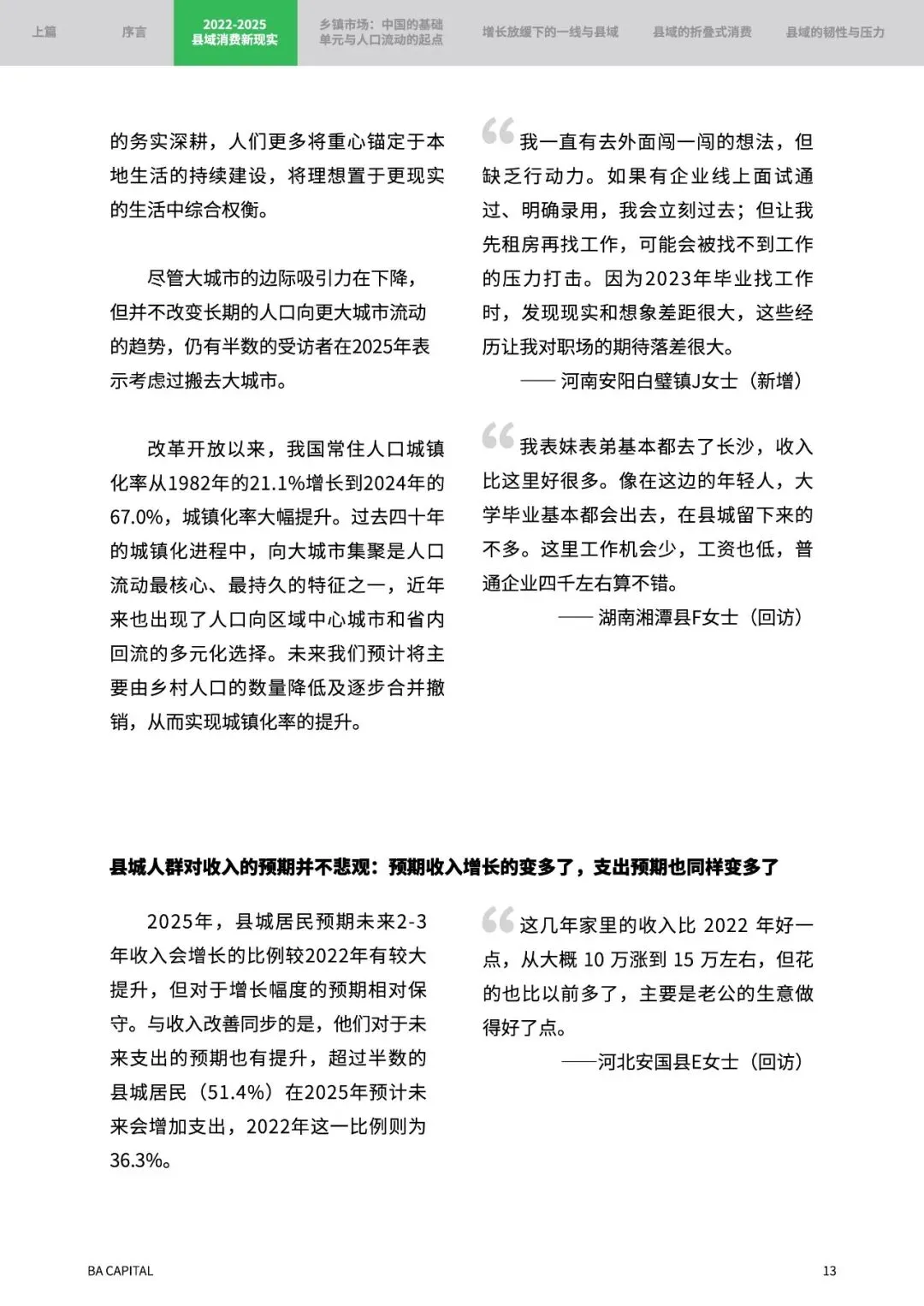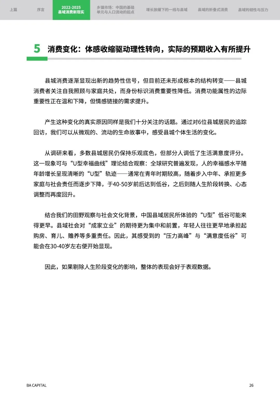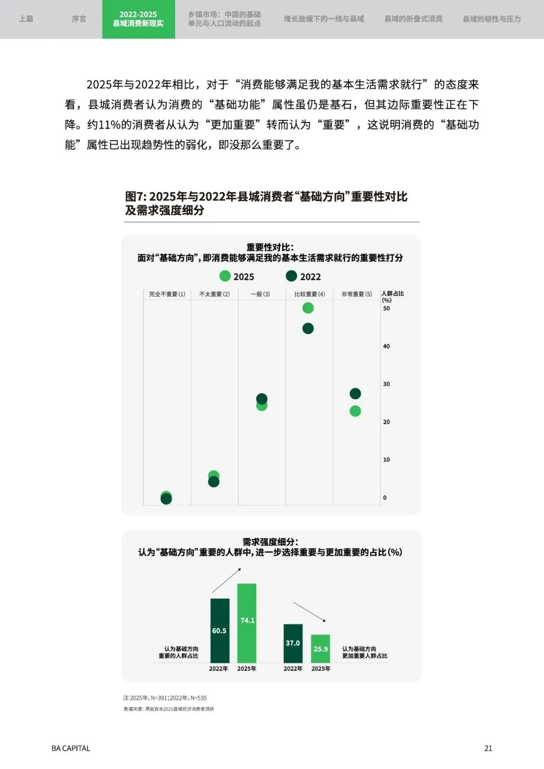 务实的财务预期,96%的县域居民认为未来收入至少保持稳定。这种“不求暴富但求安稳”的心态,反而形成了消费的稳定器。