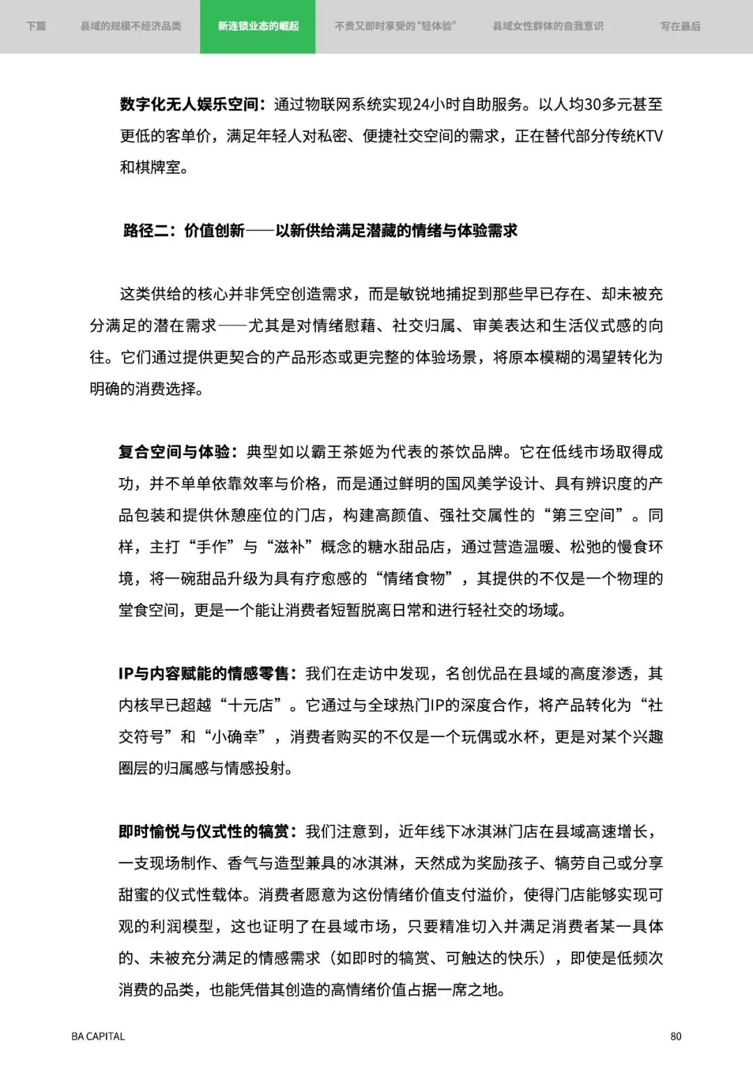 看完这份报告,最深刻的启示是:县域不是一线城市的降维版,而是另一个平行宇宙。成功品牌都在做三件事: