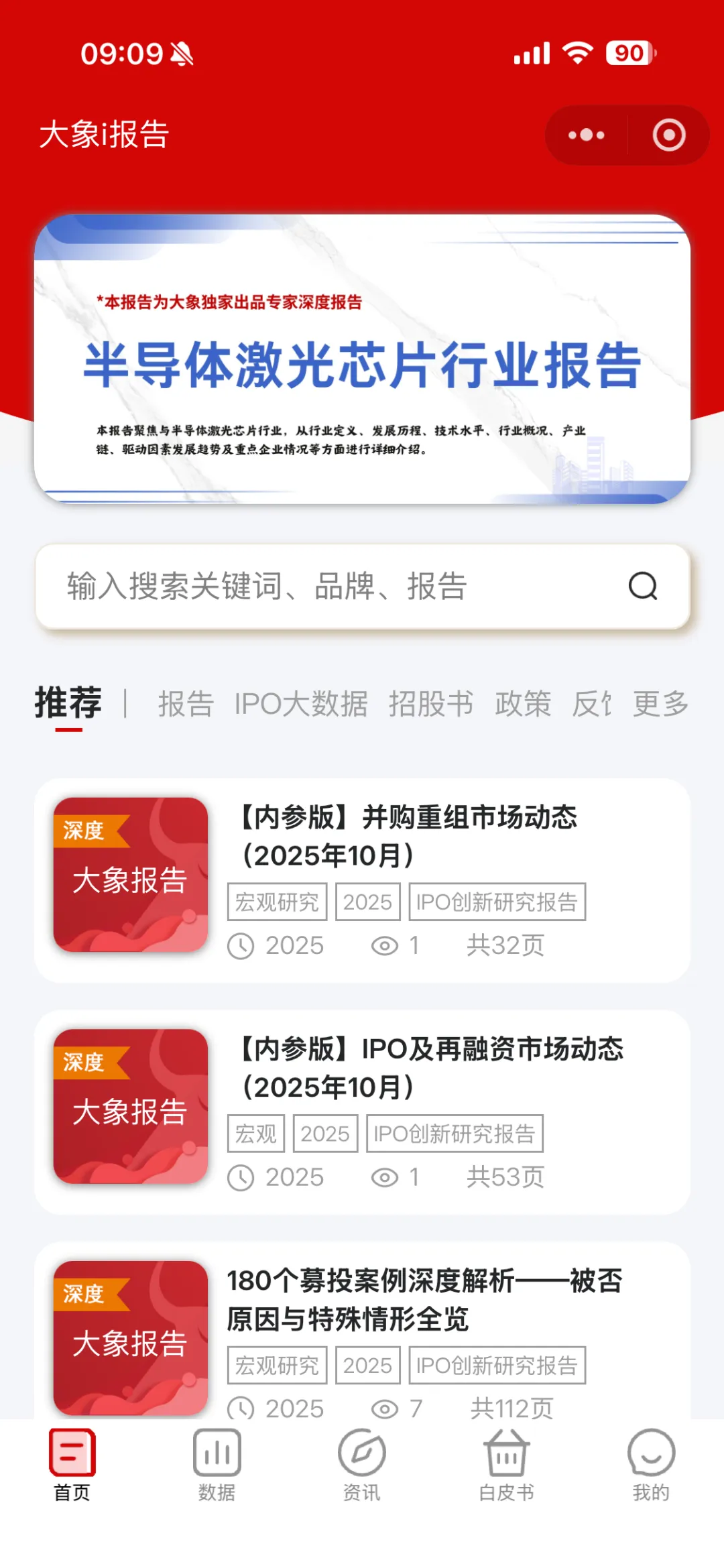我们推出的小程序——「大象i报告」,精准切入IPO核心需求,打造了一站式IPO信息聚合平台,汇聚了IPO全流程所需的各类关键资料。
