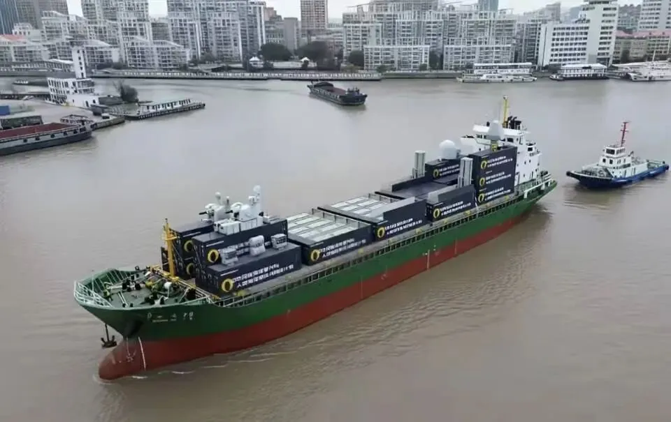 中达79号,集装箱船,集装箱里是垂发导弹,前段有近防炮,后段有雷达。