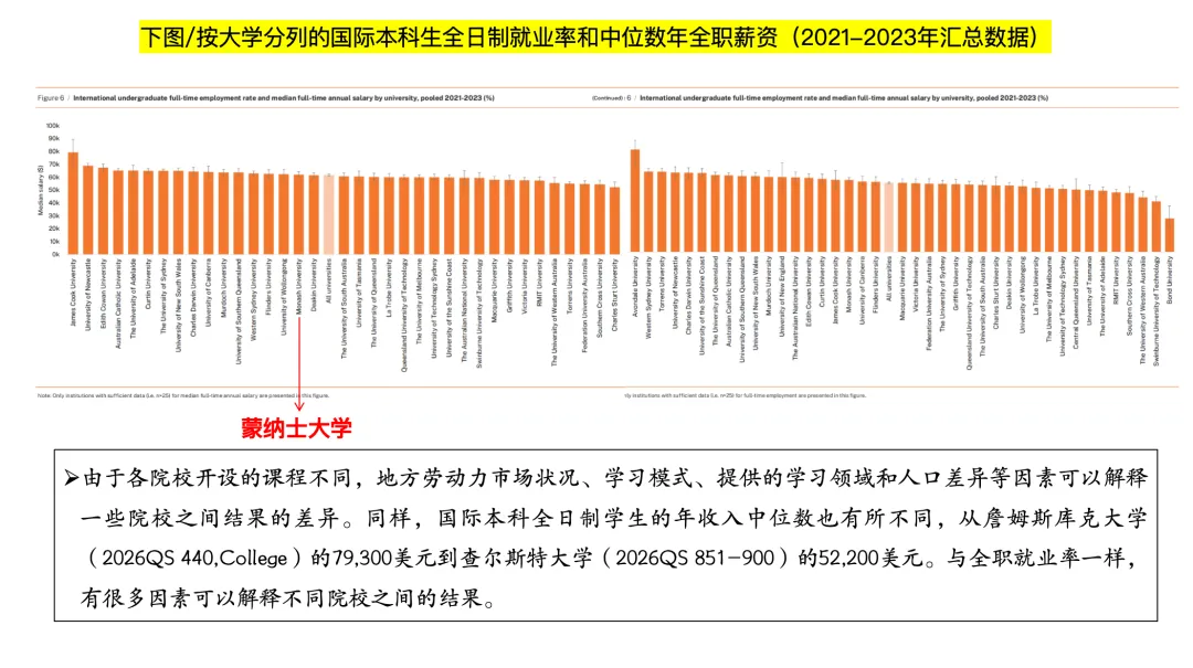 院校表现:“澳洲八大” 薪资领先,蒙纳士跻身第一梯队
