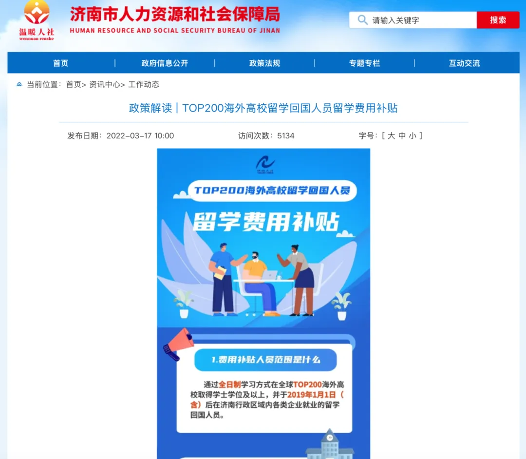 济南:本科毕业生可申领最高 4 万元留学费用补贴;
