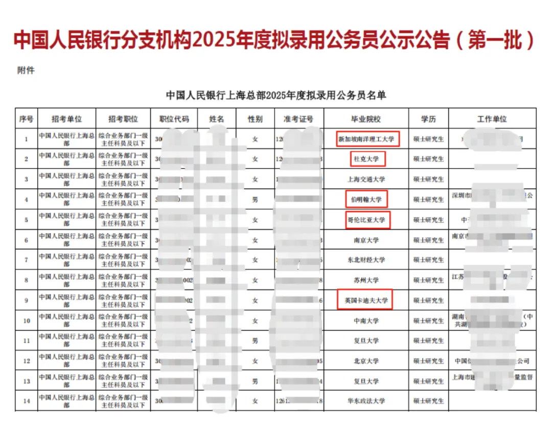 从部委公务员录用名单到央企招聘,澳洲名校学历在国内就业市场认可度持续提升,2025 年央行拟录用人员中,5.9% 具有海外背景,其中不乏悉尼大学、蒙纳士大学等澳洲高校毕业生。