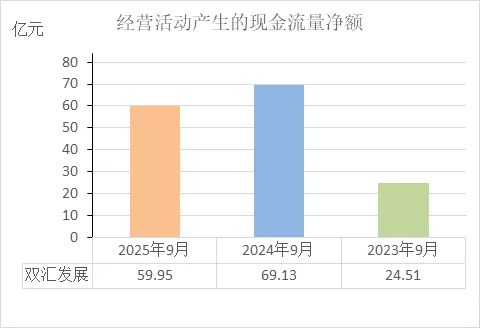 每年主业经营净流入数十亿现金(2025年前三季度60亿,2024年同期69亿)。这是它最核心的健康标志。