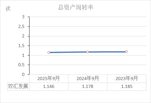 双汇近三年的总资产周转率稳定在 1.15次/年左右,这说明了两个核心问题,且结论是财务非常健康: