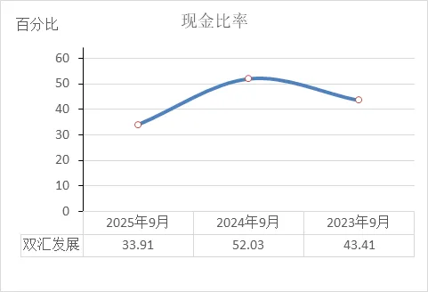 2025年9月:现金略有下降至约55亿元,但仍远高于2023年,说明公司有足够的资金储备应对任何突发需要。