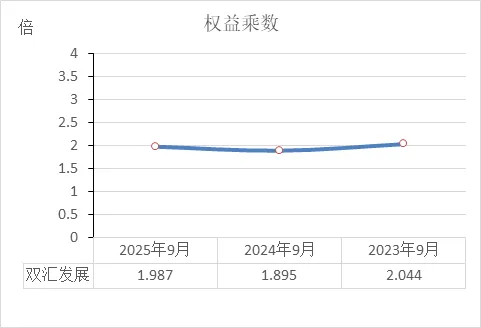 双汇近三年的权益乘数稳定在 1.9倍至2.0倍 左右,这说明公司财务结构非常稳定、健康,且适度运用了财务杠杆。