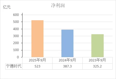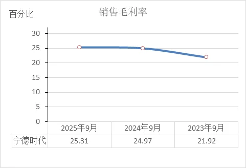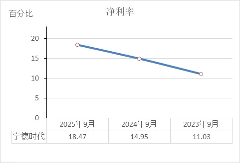 宁德时代近三年净利率持续大幅提升:2023年9月11.03% → 2024年9月14.95% → 2025年9月18.47%。