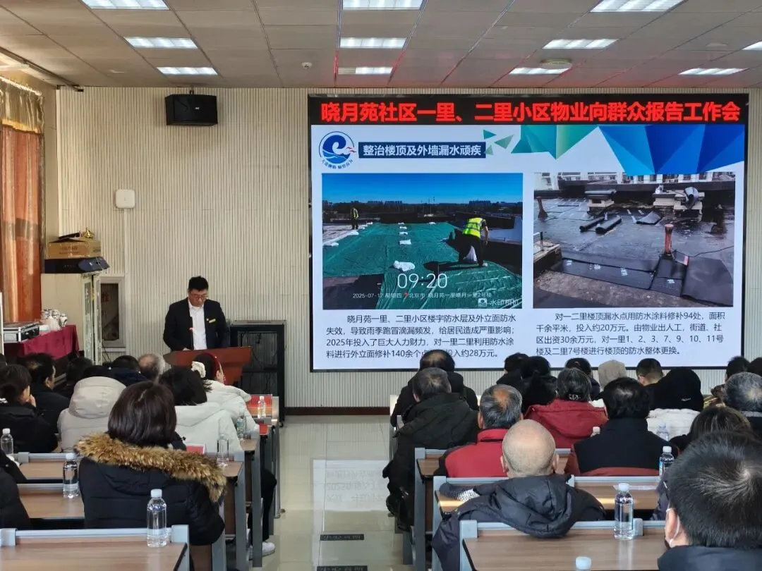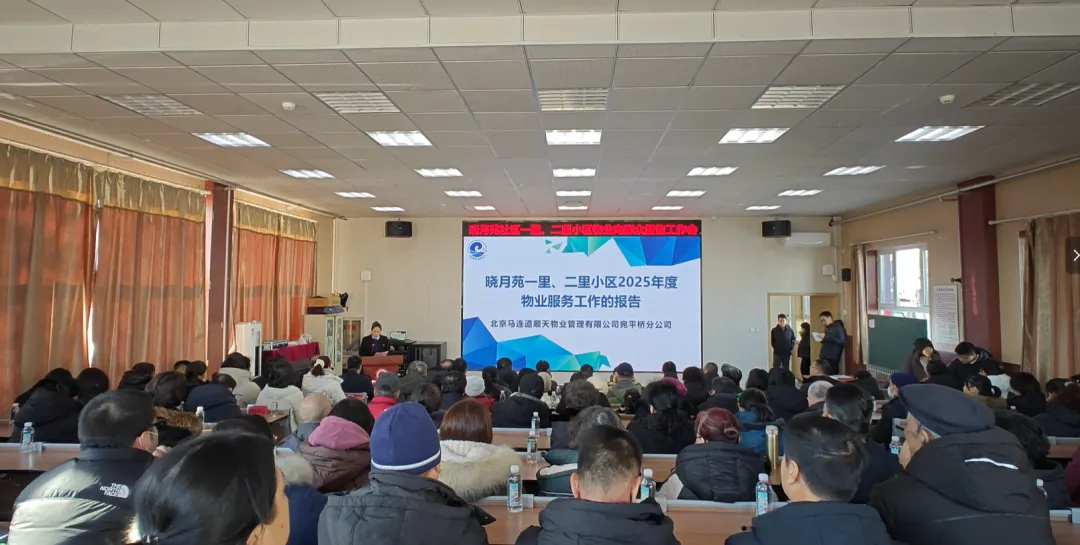 2026年1月23日上午,宛平街道晓月苑社区组织北京马连道顺天物业管理有限公司宛平桥分公司召开晓月苑社区一里、二里小区物业服务企业向群众报告工作会。群众代表、物业服务企业上级单位代表、物业领域专家、人大代表、宛平街道党工委办事处领导、街道职能部室工作人员、社区工作人员代表等80余人参会,区委社会工作部、区房管局、宛平派出所代表列席。会议由晓月苑社区党委书记刘颖主持。