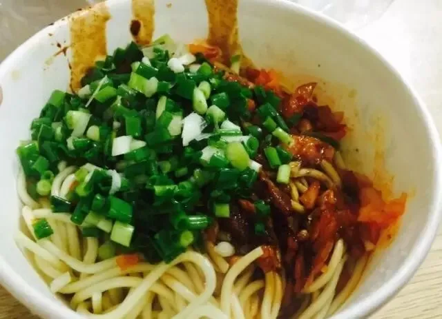 这家店的面比较湿热,吃起来不会觉得口干,给的芝麻酱也有些与众不同,其他料放的不多,简单的葱花笋丁香菇丁,但是味道真好,口口相传。门口的食客都是一人一个凳子开吃的架势。