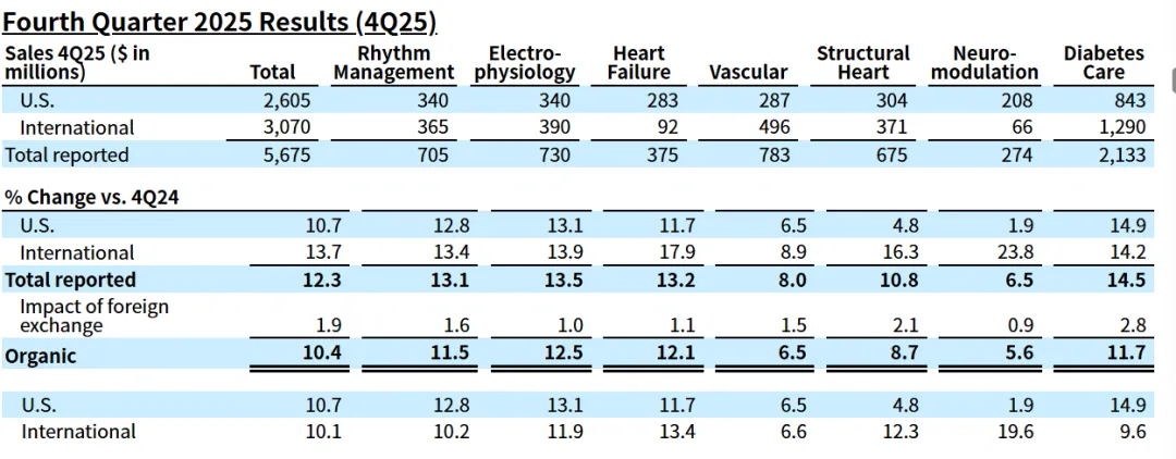 •增速“跑赢全场”:报告增速15%、有机增速12%,不仅远超公司整体营收增速(5.7%),还比医疗器械部门其他业务(电生理13.5%、心衰13.2%)更能打;
