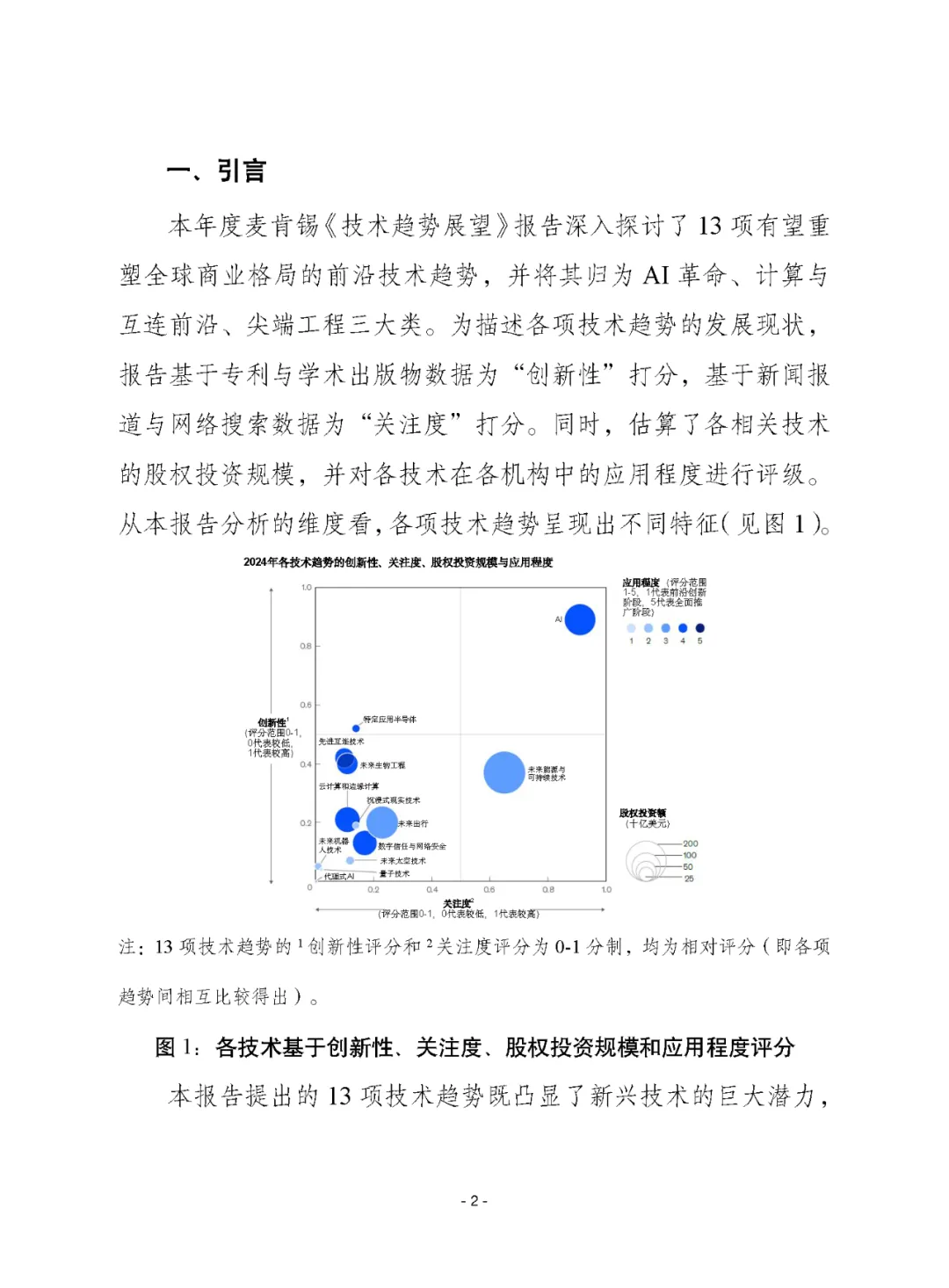 在全球科技格局经历重大转变的关键时刻,麦肯锡最新发布的《2025年技术趋势展望》报告揭示了正在重塑商业世界的13项前沿技术。本报告不仅分析了各项技术的发展现状,更通过创新性、关注度、股权投资规模和应用程度四个维度,为我们呈现了一幅清晰的技术发展全景图。