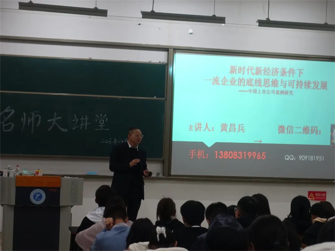 为了充实同学们的思想,丰富其知识,促进对新时代新征程中经济的高质量发展与底线的了解,提高对企业发展的警觉性。2023年12月12日晚上,三峡人寿保险股份有限公司审计总监黄昌兵博士,应邀在两江校区宏远楼C0220教室以《新时代新征程中世界一流企业的高质量发展与底线思维》为主题开展学术讲座。会计学院苏春老师主持本次讲座,学院师生共170余人参加。