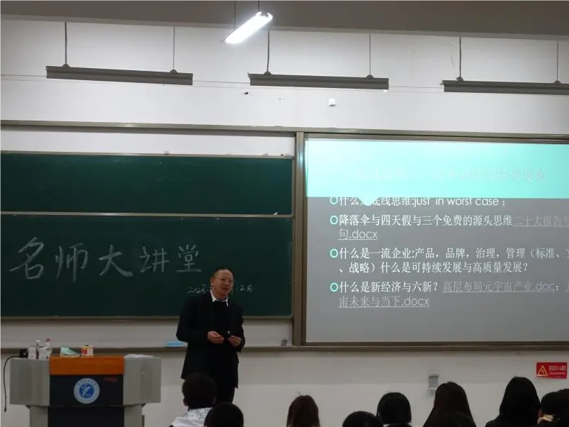 其次,黄昌兵博士基于新时代的六新角度,全方位介绍了底线思维七控与新时代法“人”的“五高”。对于底线思维与一流企业的可持续发展,黄昌兵博士列举了许多例子,从实际企业案例分析,使同学们对当今的经济形势与企业有一定的了解。