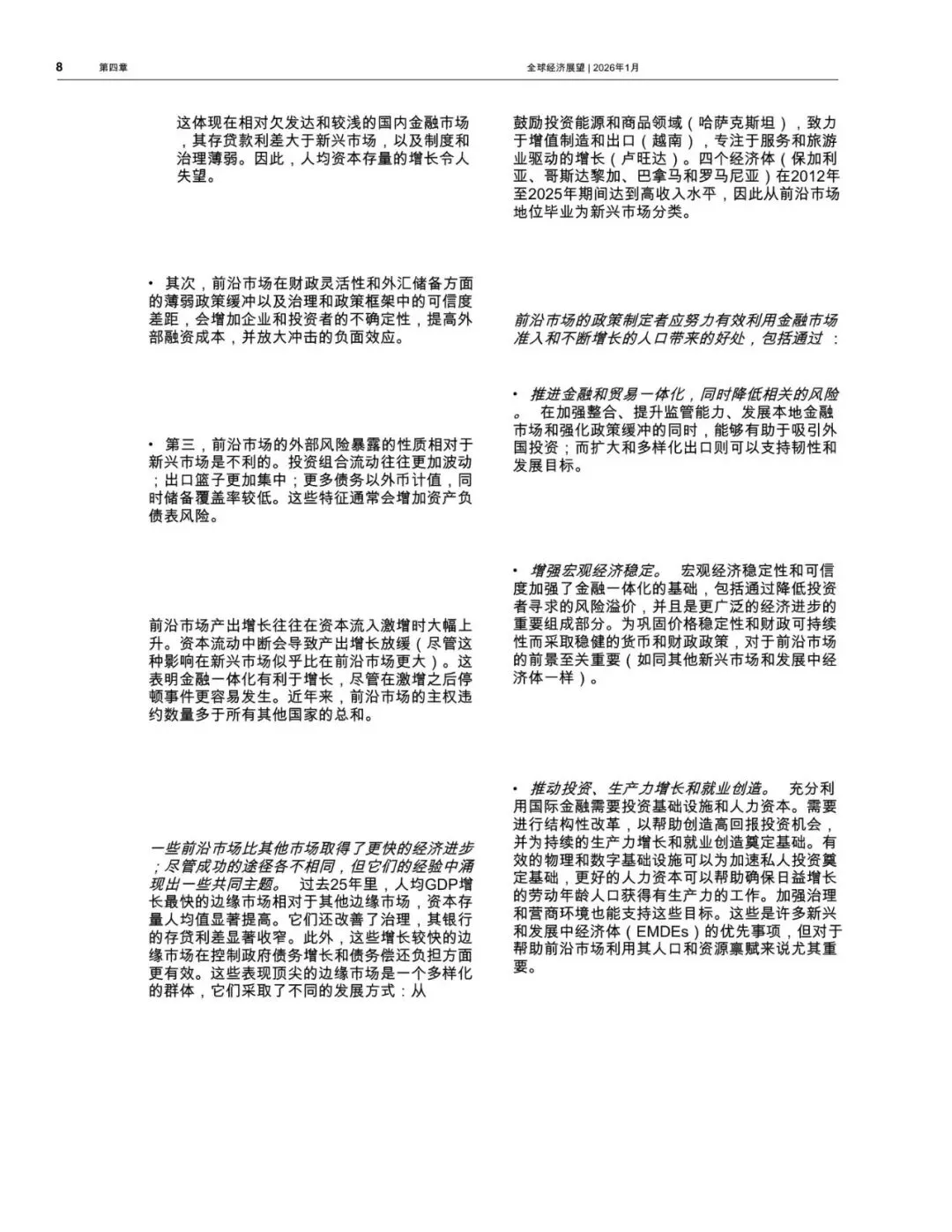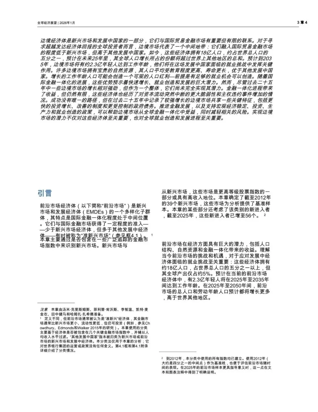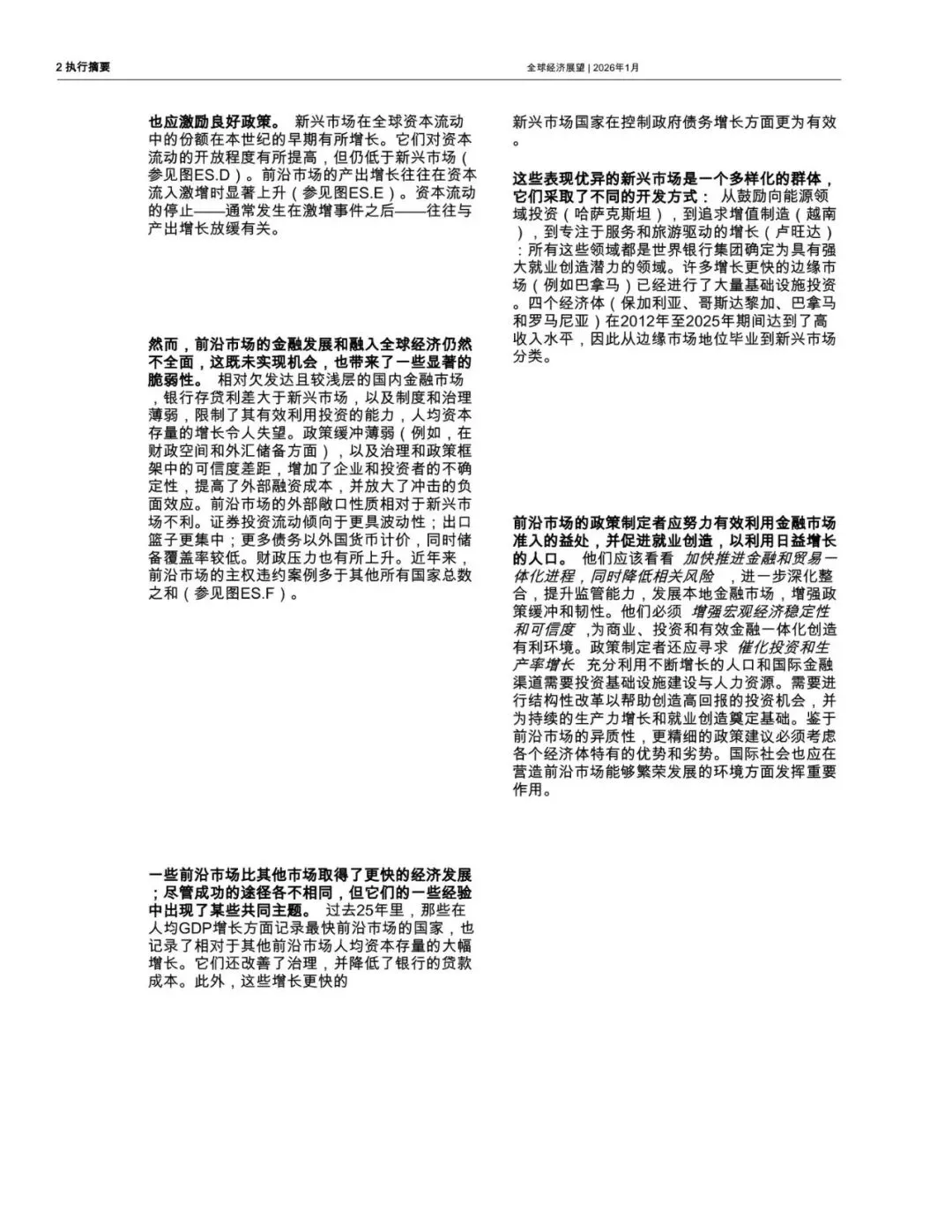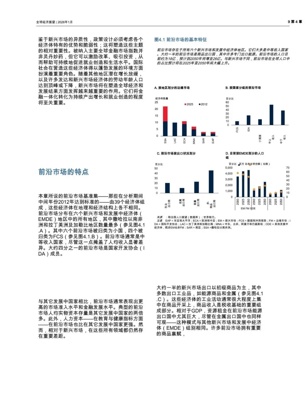 世界银行于2026年1月发布的《全球经济展望》报告,其第四章《前沿市场经济:前景、表现与展望》聚焦于全球经济发展格局中一个独特且日益重要的群体——前沿市场。这份报告旨在系统性地分析这些经济体的基本特征、发展表现、面临的挑战以及未来的增长前景。