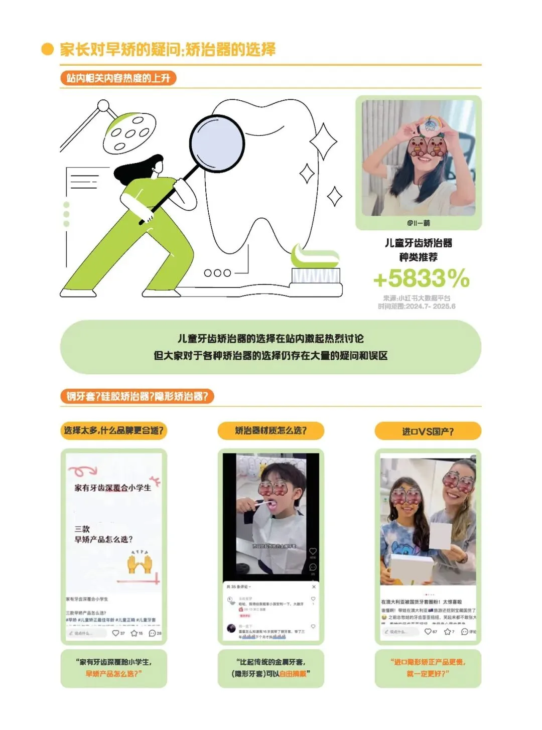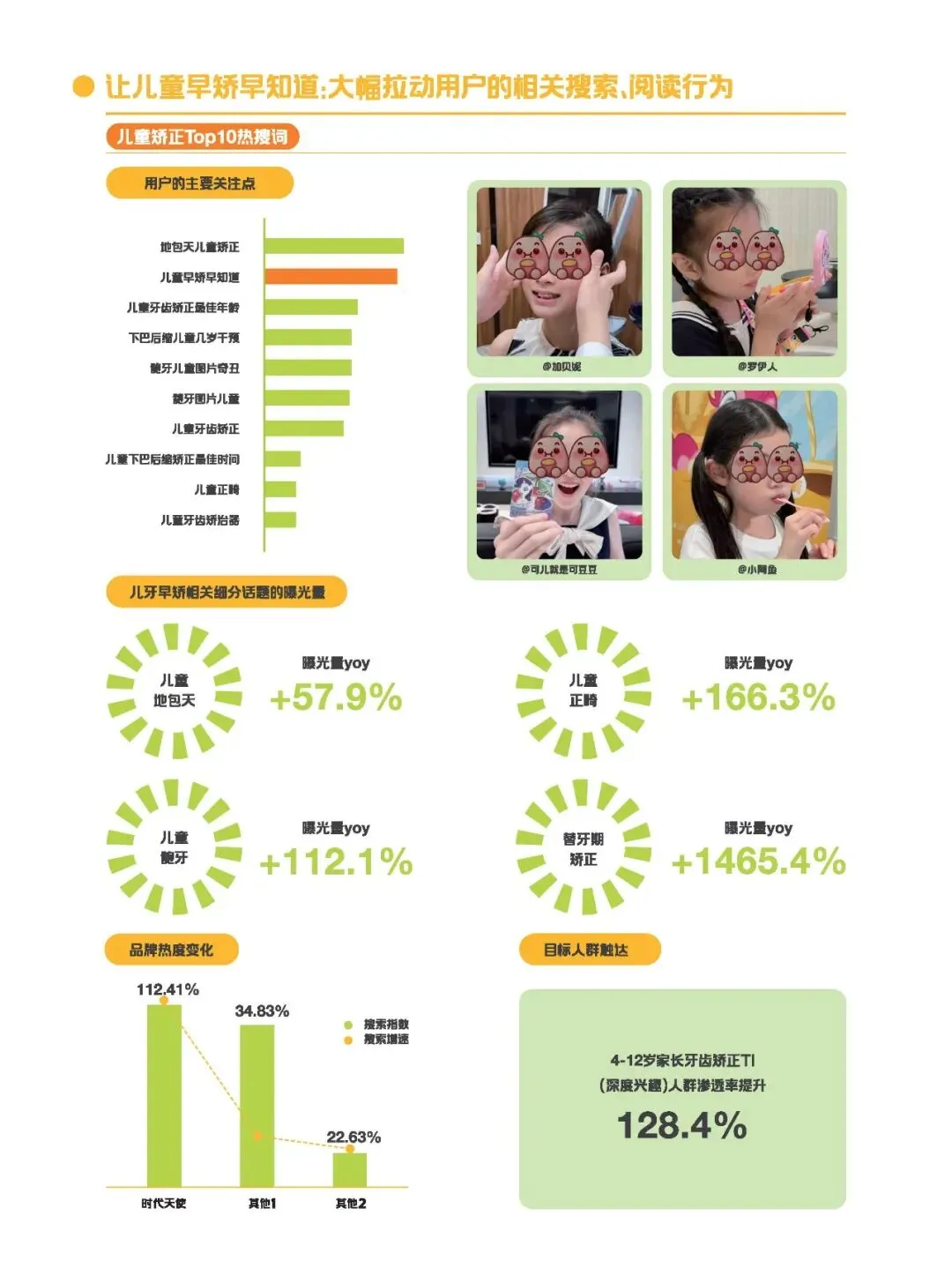 新一代父母的育儿理念转变,为儿童早矫带来了新的机遇。他们不再局限于传统的育儿观念,而是积极寻求科学的育儿方法。数据显示,儿童牙齿矫正相关搜索增长迅速,搜索量同比增长47%,阅读数同比增长153%,互动数同比增长100%。家长们对早矫的关注度大幅提升,他们希望通过科学的干预,让孩子拥有健康整齐的牙齿,从而提升孩子的自信心和生活质量。
