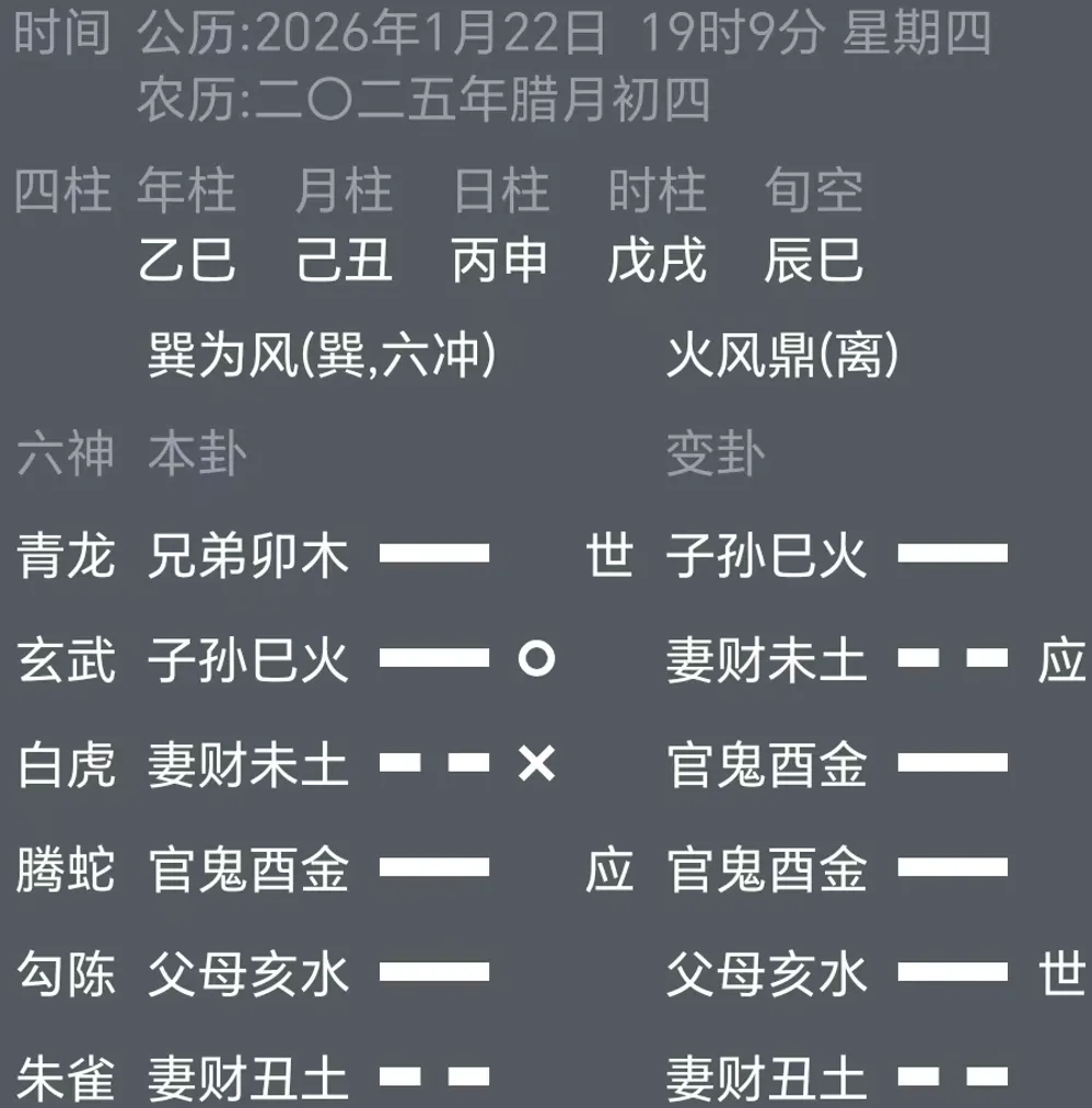 巽为风,主渗透、变动、流通,对应经济中的贸易、供应链、金融市场等领域。六冲卦则象征动荡与反复,预示2026年经济可能面临内外环境的频繁调整,市场情绪易受政策、国际局势等因素扰动,呈现“风行无常”之态。