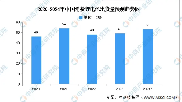 目前,全球经济大环境下行导致基建、钢铁、房地产以及大消费等领域增速下滑,其对消费类产品带动乏力,进而降低对锂电池的需求。中商产业研究院发布的《2024-2029年全球及中国3C数码电池市场洞察报告》显示,2023年我国消费锂电池出货量达49GWh。中商产业研究院分析师预测,2024年我国消费锂电池出货量将超50GWh。