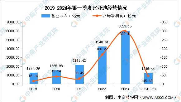 2024年第一季度实现营业收入1249.44亿元,同比增长3.97%;实现归母净利润45.69亿元,同比增长10.63%。2023年主营业务包括交通运输设备及电气制造业、日用电子器件制造业,分别占整体营收的80.27%、19.69%。