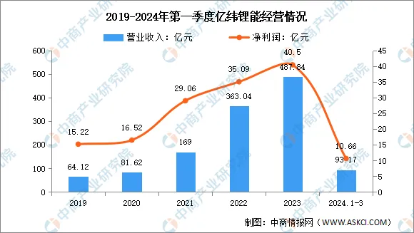 2024年第一季度实现营业收入93.17亿元,同比下降16.71%;实现归母净利润10.66亿元,同比下降6.49%。2023年主营产品包括动力电池、储能电池、消费电池,分别占整体营收的49.16%、33.50%、17.14%。