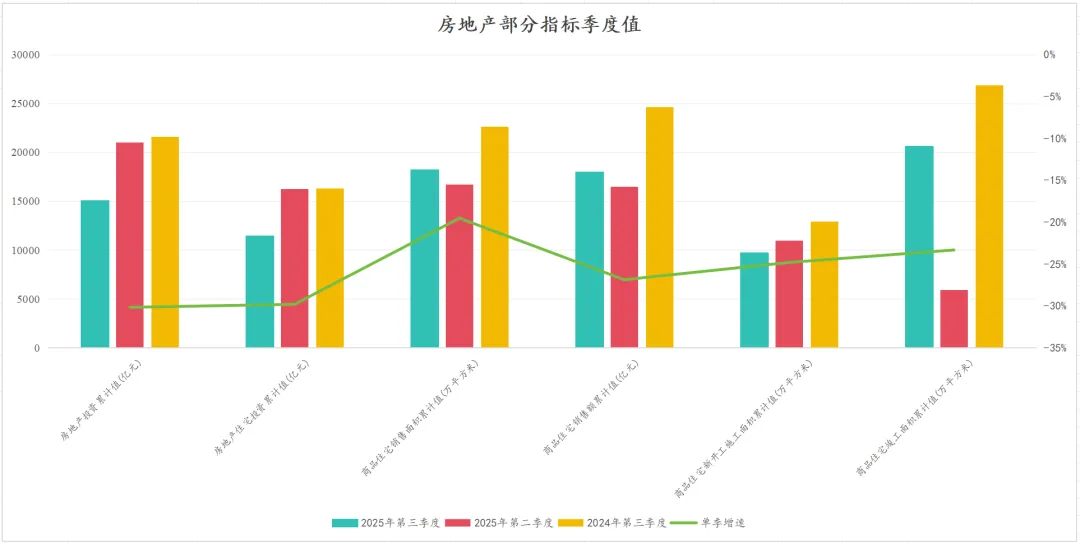 2025年,新建商品房累计销售面积8.81亿平方米、同比下降8.7%,其中住宅销售面积同比下降9.2%;新建商品房累计销售额8.39万亿元、同比下降12.6%,其中住宅销售额下降13%,降幅均明显扩大。四季度,房地产投资累计值、房地产住宅投资累计值、商品住宅销售面积累计值、商品住宅销售额累计值、商品住宅新开工施工面积累计值、商品住宅竣工面积累计值分别下降30%、30%、20%、27%、25%、23%,加速走弱。