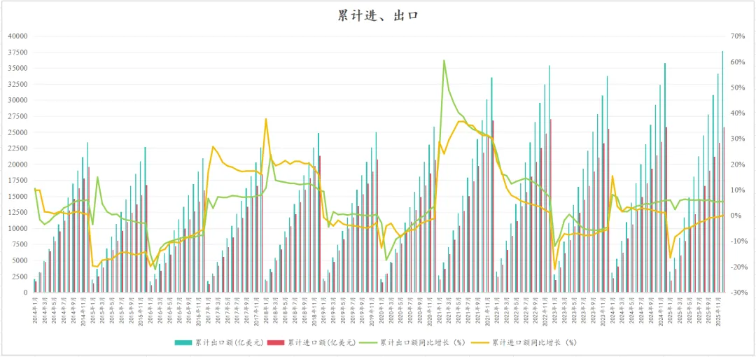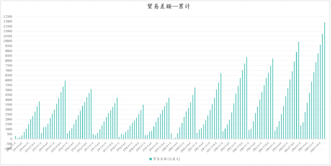2025年全年,尽管面临关税博弈等外部冲击,我国出口金额同比增长5.5%,进口金额同比增长0%,进出口总额为6.35万亿美元,贸易顺差接近1.2万亿美元、创历史新高。