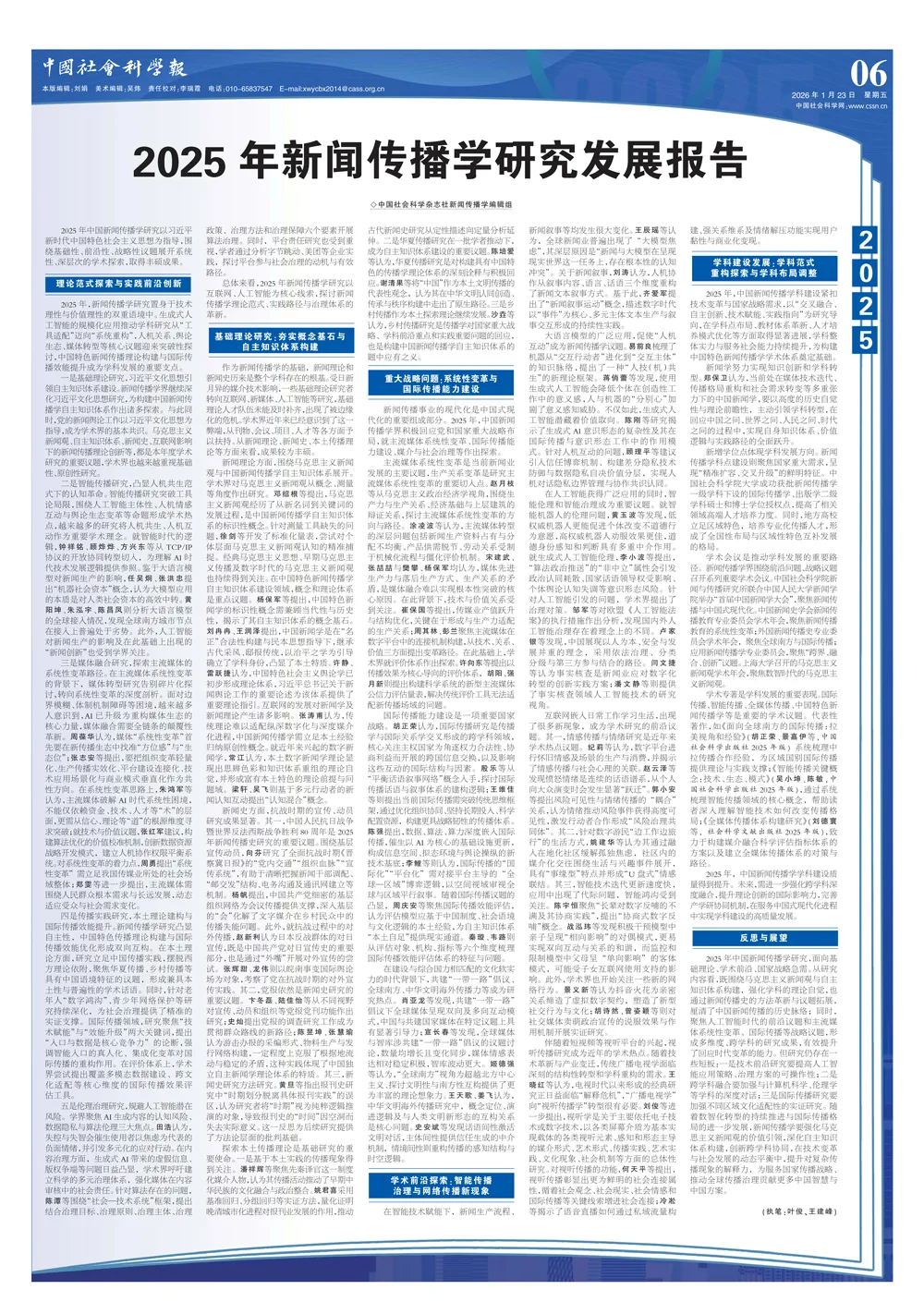 总体来看,2025年新闻传播学研究以互联网、人工智能为核心线索,探讨新闻传播学理论范式、实践路径与治理体系的革新。
