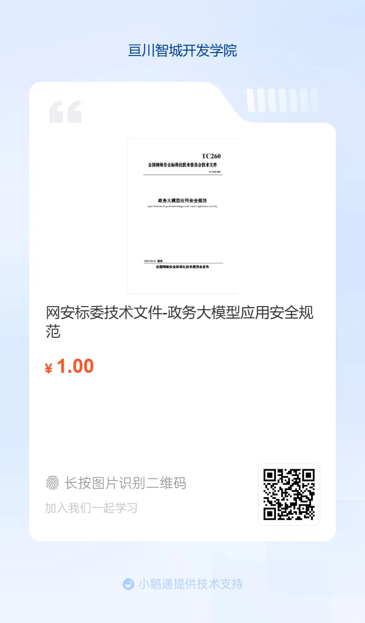 想解锁政务大模型安全应用的完整方案?扫描下方海报二维码,即可获取《政务大模型应用安全规范》全文档,一同探索智能政务安全发展新路径~