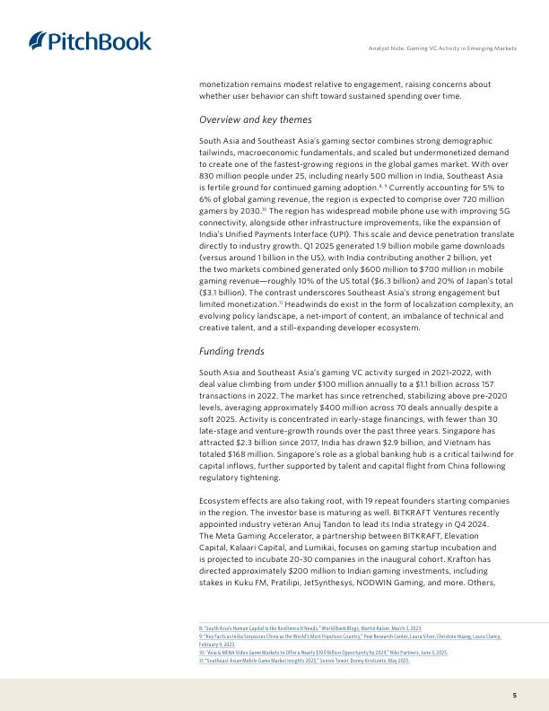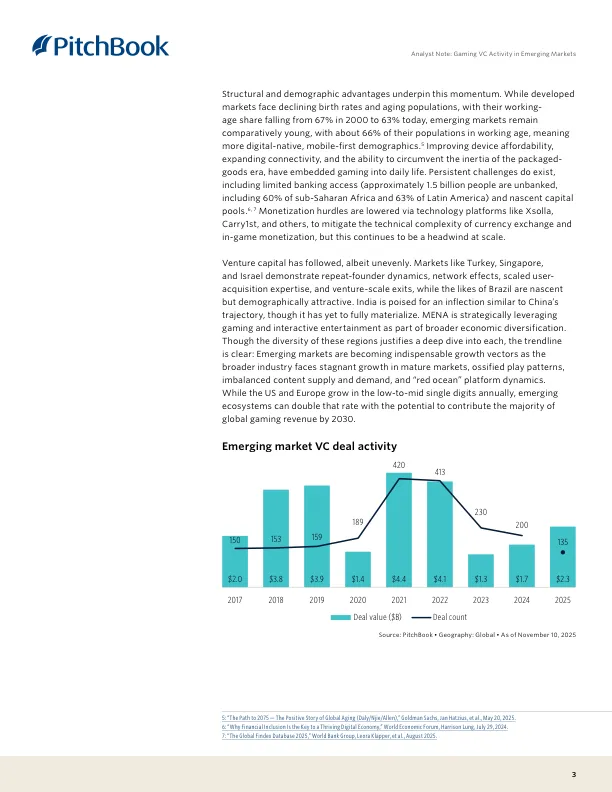 全球游戏产业的增长引擎已从欧美成熟市场转向新兴市场。这些地区凭借庞大的年轻人口和移动普及率,贡献了近15%的全球游戏收入。然而,各区域发展路径迥异:有的靠政策和资本(如中东),有的靠用户规模但变现困难(如南亚/东南亚),有的则面临支付和基建瓶颈(如非洲)。VC投资正变得更加理性,聚焦于能解决本地化挑战并建立可持续商业模式的团队。
