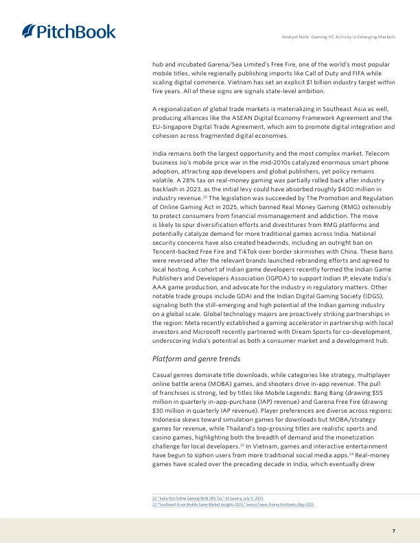 - 印度政策多变:2025年全面禁止“真钱游戏”(RMG),迫使行业转型。