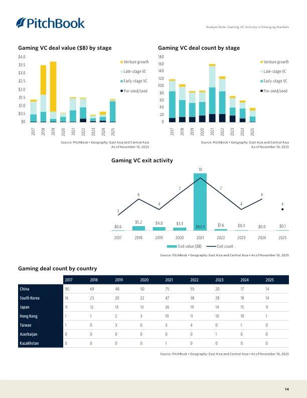- 现状:3.5亿玩家,市场价值14亿美元,但VC投资最少(2017年以来仅2.3亿美元),且无VC退出案例。