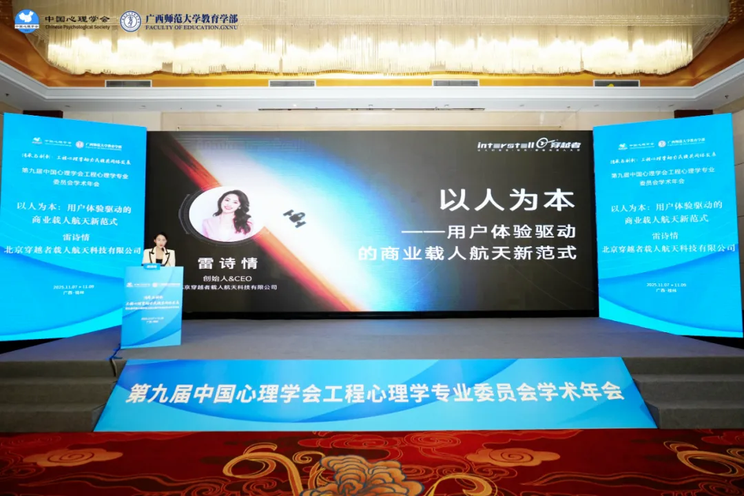 “我是北京穿越者载人航天科技有限公司创始人、CEO雷诗情,硕士毕业于中国人民大学应用心理学专业,在学习期间做了人因工程方面的研究,因此与载人航天结缘,创立了中国首家商业载人航天公司——穿越者。我们认为,商业载人航天的本质是‘为人服务’,而工程心理学,正是连接冰冷坚硬的航天技术与温暖细腻的人类需求的核心桥梁。‘以人为本,用户体验驱动’并非一句口号,而是一套必须嵌入骨髓的指导理念、研发哲学、组织制度和严谨的流程,它是穿越者笃信并践行的、能够引领中国商业航天实现可持续与差异化发展的新范式与根本方法论。”雷诗情说道。