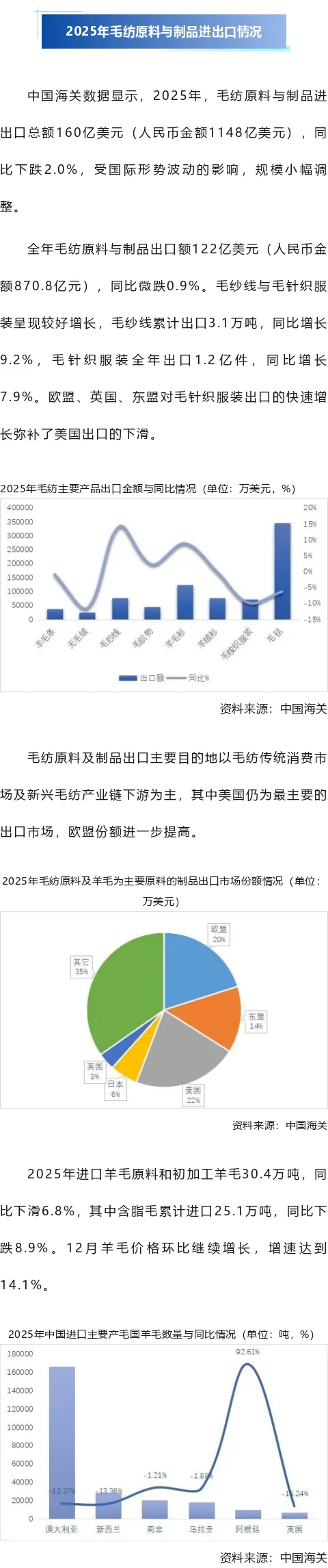 市场分析 | 2025年毛纺原料与制品进出口情况