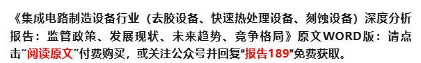在集成电路制造设备行业中,本报告主要分析去胶设备、快速热处理设备、刻蚀设备三个主要细分行业。