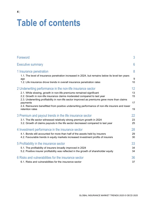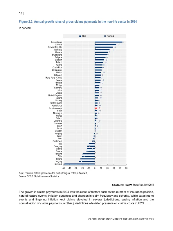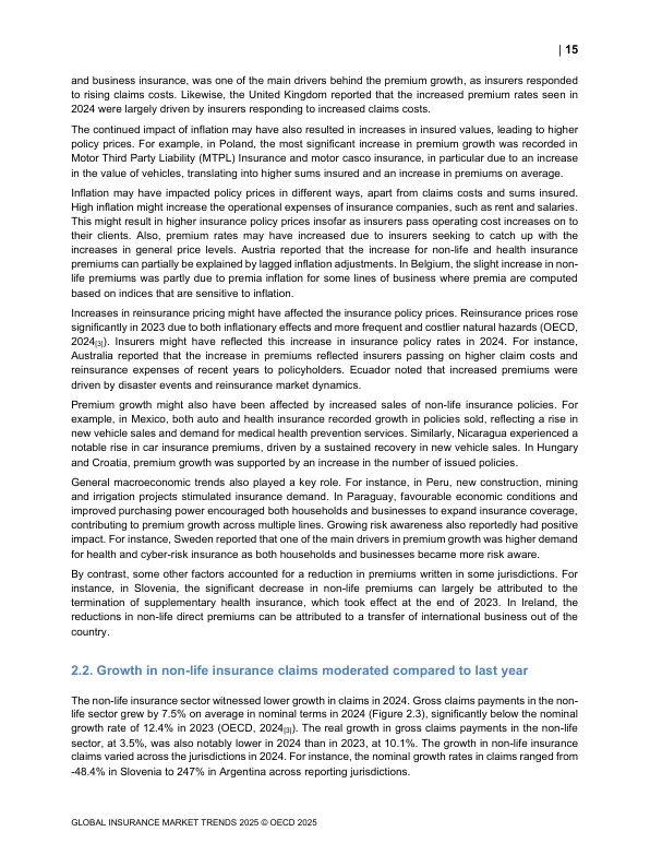 - 赔付控制:赔付增长(7.5%)慢于保费增长,这主要得益于通胀压力缓解和部分国家没有发生特大灾害。