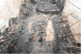 起火家庭共有三辆电动自行车,技术组调查了周边监控视频,发现有两辆电动自行车平时都是放在家里充电,另外一辆电动三轮车电池拆掉后拿回家充电。屋主对锂电池充电的危害性没有足够认识和警惕,存在侥幸心理,长期在家充电。该建筑只有一个进门,设置了两道门,当事人睡前用铁锁将门反锁,2辆电动自行车停放于入门左侧。火灾发生后,烟气迅速蔓延,封堵门口,当事人无法第一时间拿到钥匙打开门锁逃生,致使2名人员因吸入烟气过多在床上中毒昏迷死亡,1名人员逃至后窗位置无法逃生后吸入有毒高温烟气死亡。