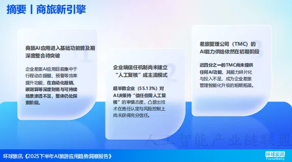 企业差旅管理作为效率至上的场景,AI应用已进入基础功能普及期,但深度整合仍待突破: