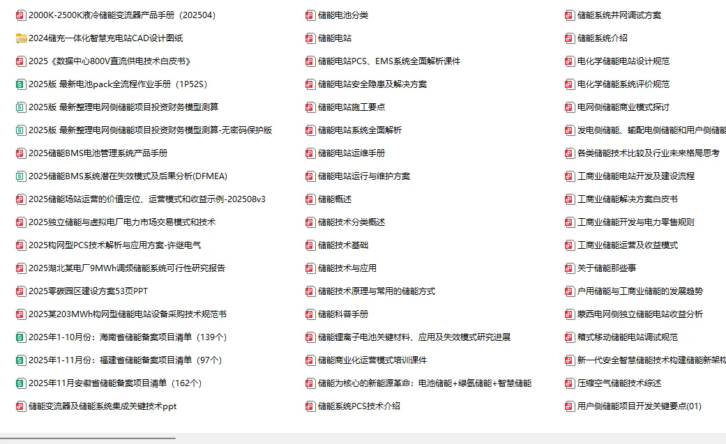 为了帮助大家更深入的学习储能知识,我还整理了50+ 份储能资料,包括 《储能电池分类》、《储能电站系统全面解析》、《储能科普手册》等等。