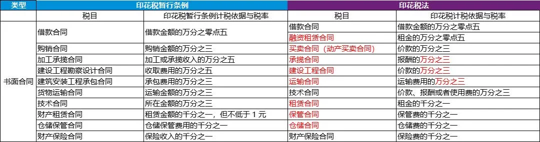 应税合同名称及税率变化