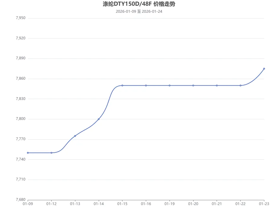 短期上涨趋势:1月中旬以来,受上游聚酯工厂挺价意愿增强、部分装置检修减产等因素影响,涤纶长丝价格呈现上涨态势。1月21-22日部分规格产品连续上调价格,显示上游厂商对价格的支撑力度较强。