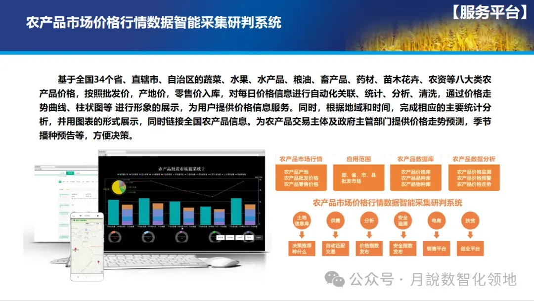 从数据维度看,中心整合的资源覆盖“空—天—地”全场景,包括土壤墒情、气象预警、作物长势、农机作业等生产数据,农资流通、市场价格、消费偏好等经营数据,以及耕地保护、质量安全、政策补贴等管理数据,通过“全农码”统一赋码实现数据标准化,打破不同部门、不同环节的数据壁垒。从功能特征看,中心兼具公共服务与产业赋能双重属性,既能为政府决策提供科学支撑,也能为农业生产经营主体提供精准化、个性化服务。