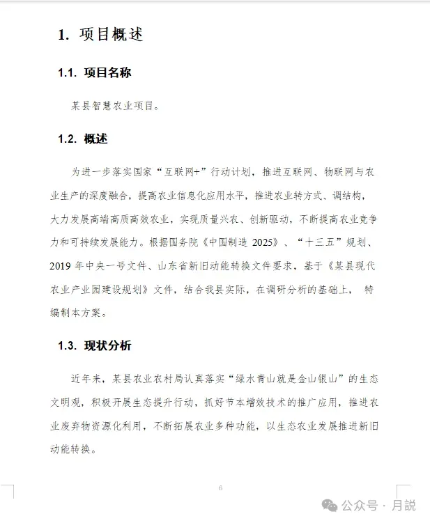 某县智慧农业大数据平台建设方案(130页 WORD).docx 智慧农业整体解决方案(78页 WORD).docx 智慧农业视频监控系统解决方案(40页 WORD).docx 智慧农业技术解决方案(43页 WORD).docx 智慧城市中智慧农业建设方案(44页 WORD).docx 智慧农业系统平台实施方案.docx 智慧农场建设方案-种植场(40页 WORD).docx 智慧农业现代生态观光农业产业园项目建设方案.pdf 宝林村智慧农业系统建设方案(31页 WORD).docx ····
