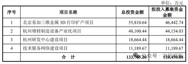 1.北京易加三维金属3D打印扩产项目:总投资5.58亿元,拟投入募集资金4.64亿元,项目建成后将大幅提升金属3D打印设备生产能力,优化生产布局,提升生产效率和产品质量稳定性。